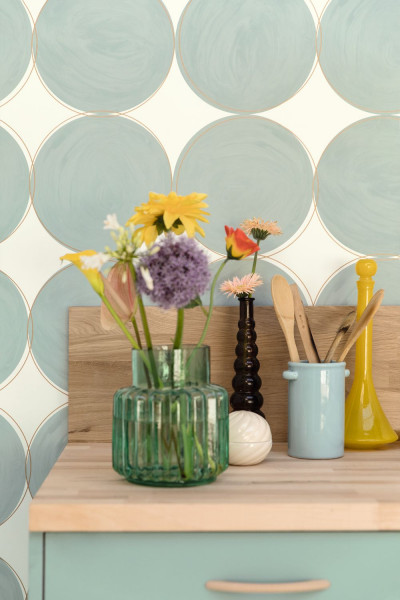Mostramos sus curvas en amplias superficies en preciosos colores planos como pintados a mano y absolutamente de tendencia, a elegir entre el azul pato pollito, el azul relajante o el beige luminoso.