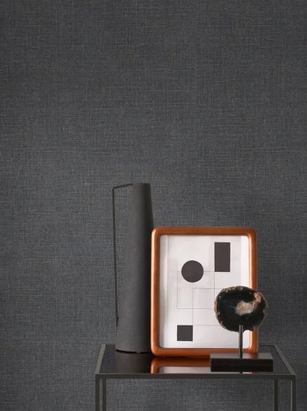 Distribuido en todas las paredes de una sala de estar, este papel pintado parece liso, con un color profundamente sutil. Cuando se observa más de cerca, revela una trama compuesta de diferentes tonos, entrelazados como los hilos de la malla de una tela muy hermosa.