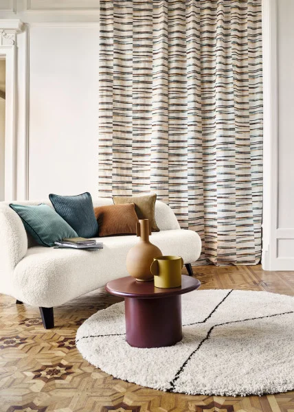 Uso: Tejido apto para la confección de cortinas y cojines.