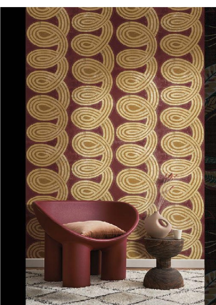 Puedes añadir profundidad con un papel pintado en espiral, son una forma moderna de actualizar la decoración de tu hogar sin ser demasiado cargado. Crea una ilusión que invita a la reflexión y da sensación de profundidad a tu salón, dormitorio, cocina….