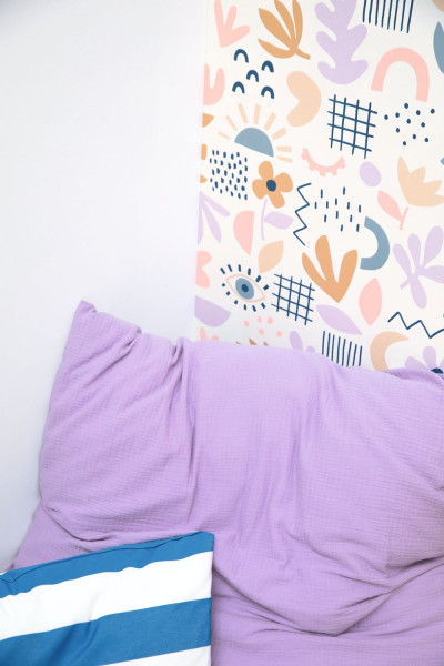 Y nos sienta bien en esta decoración arty con estampados coloridos un poco naif… ¡como esos garabateados en la esquina de un cuaderno! Para ser jugado en un fondo claro u oscuro.