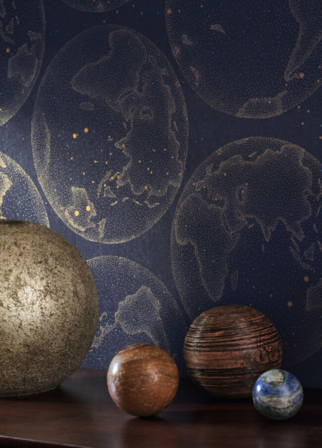 Galileo homenajea a los entusiastas de la astronomía y la exploración espacial con un hermoso mapa del mundo, uno grabado en negro y el otro en azul medianoche.