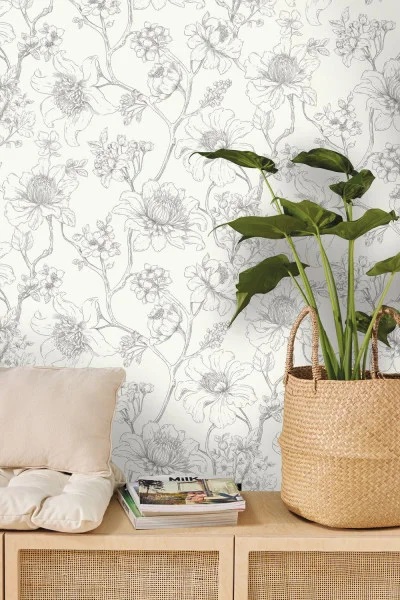Para los amantes del grabado clásico, este estampado floral evoca el encanto de las casas antiguas. Disponible en tejido no tejido fibroso para mayor personalidad, elija entre blanco o negro y dorado.