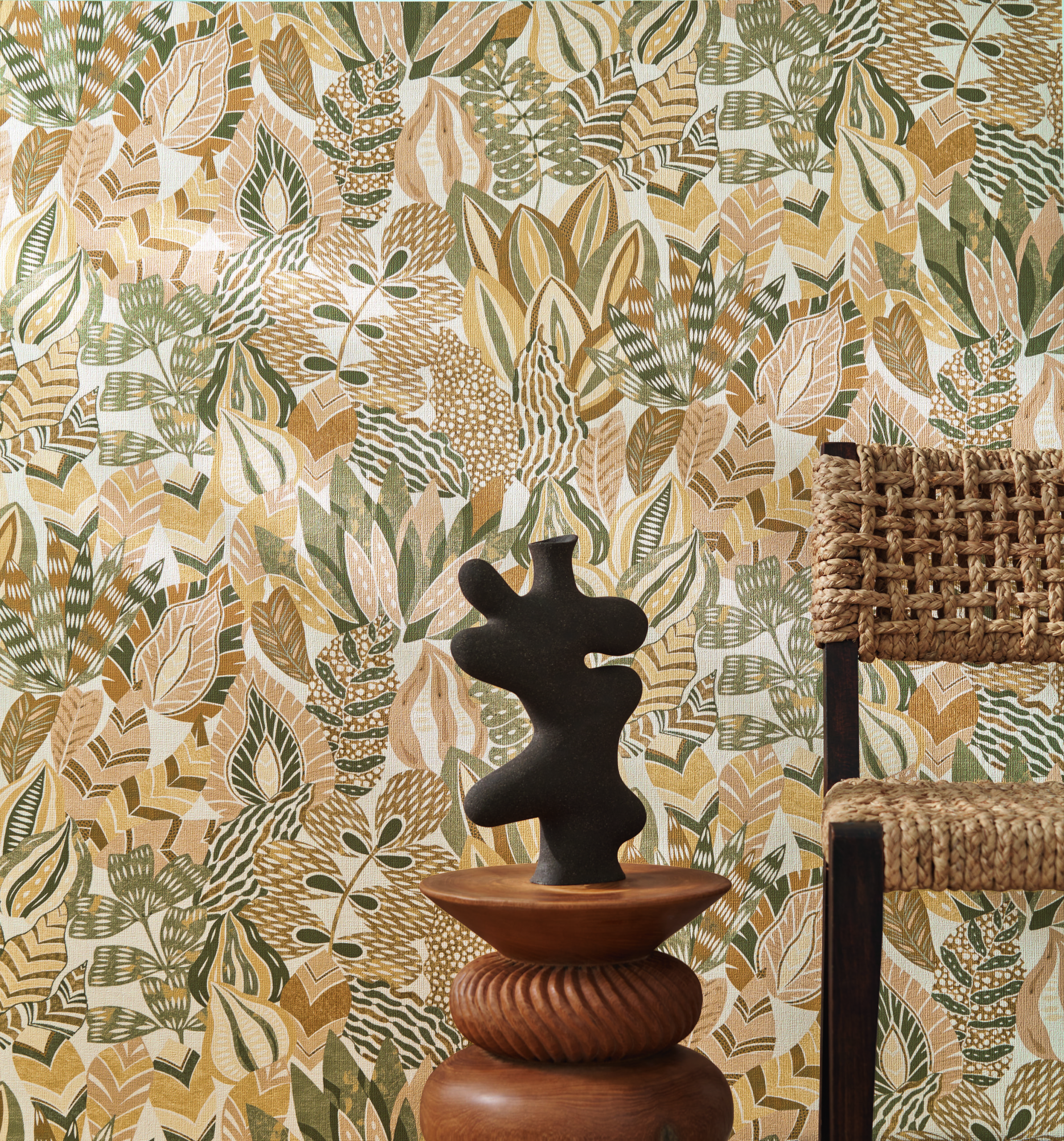 Maravilla de la naturaleza, el jardín de Alfabia es un oasis de frescura en Mallorca. Alberga un follaje floreciente, vibrante con el viento y cuyas formas se mezclan armoniosamente. Este encantador jardín inspira una creación compuesta de plantas cortadas de diferentes texturas de papel y luego adheridas a una fibra natural.