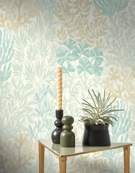 Con Récif, se exhiben los gráficos de moda de corales, algas y otras anémonas de mar. Los detalles iridiscentes refuerzan la impresión de una expedición en busca de un tesoro marino hundido.