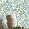 Para esta impresión digital, se puso énfasis en la diversidad floral (clavel, prímula, lirio estepario, helecho, etc.). Estas especies se encontrarían fácilmente en los bordes mixtos de una cabaña inglesa para ser recogidas y componer opulentos ramos.