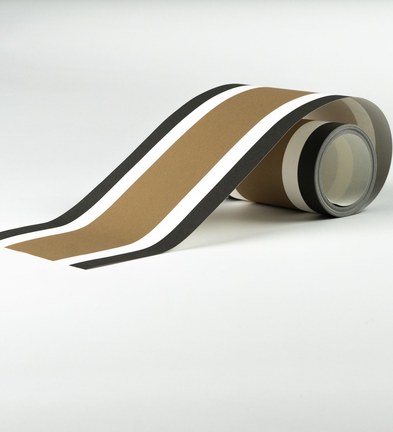 Mezcla/mezcla de rayas Menos estrecho que las trenzas, el friso L Elegant añade brillantemente las rayas: 2 tiras finas rodean una más ancha en contraste sobre un fondo blanco. Este delicado diseño, de 13 cm de altura, permite todas las variaciones de color.