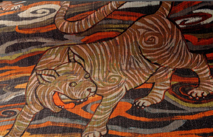 Descripción: diseño atrevido de tigres tibetanos representados en tela de lino con un sutil toque de metal.
