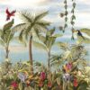 Inspirada en la vegetación y la fauna típicas de las islas de Madagascar, la colección lleva a las paredes un festín de lémures, plátanos, palmeras y loros, con los colores y las luces que estos elementos naturales evocan.