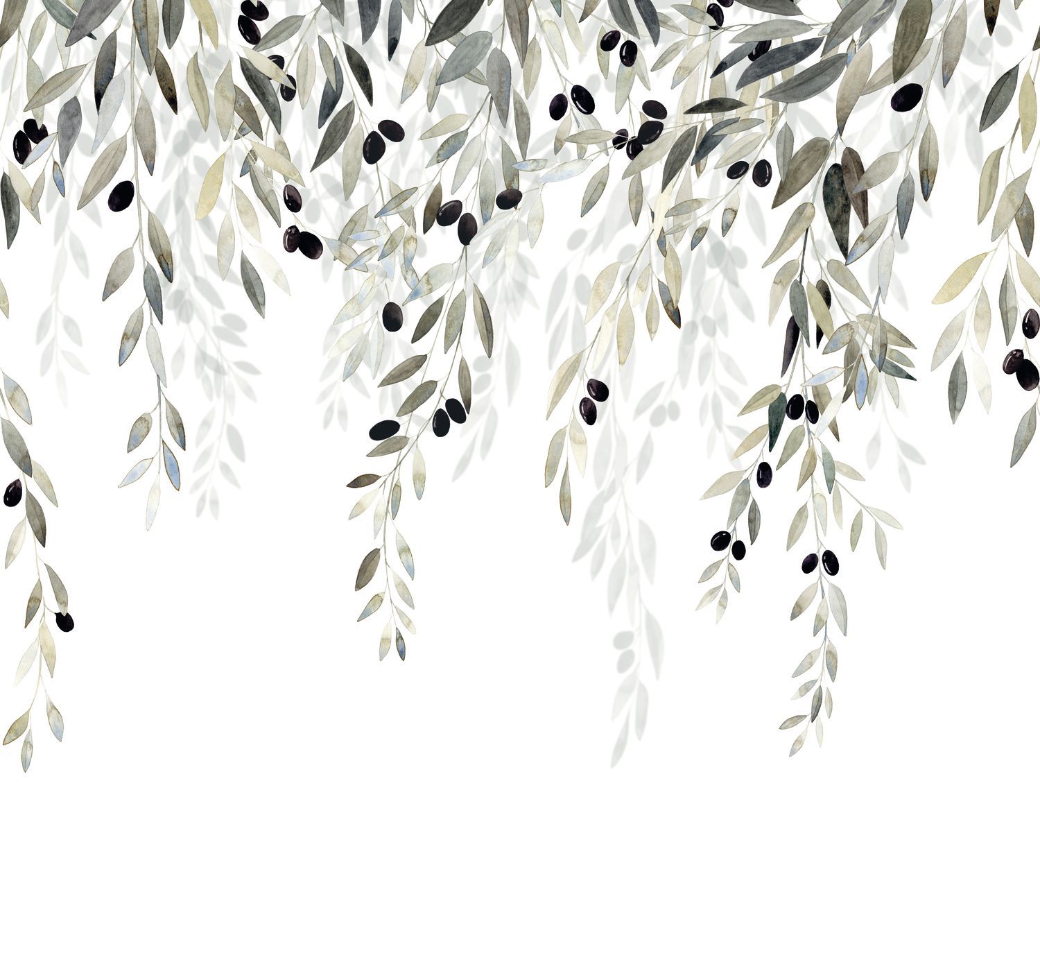 Una rama de olivo para la paz Simbólico de la paz, el olivo también presenta un follaje de rara elegancia salpicado de frutos negros llenos de promesas. Este dibujo en acuarela hace caer venerables ramas de olivo en las paredes como si nos hubiéramos detenido frente a él.