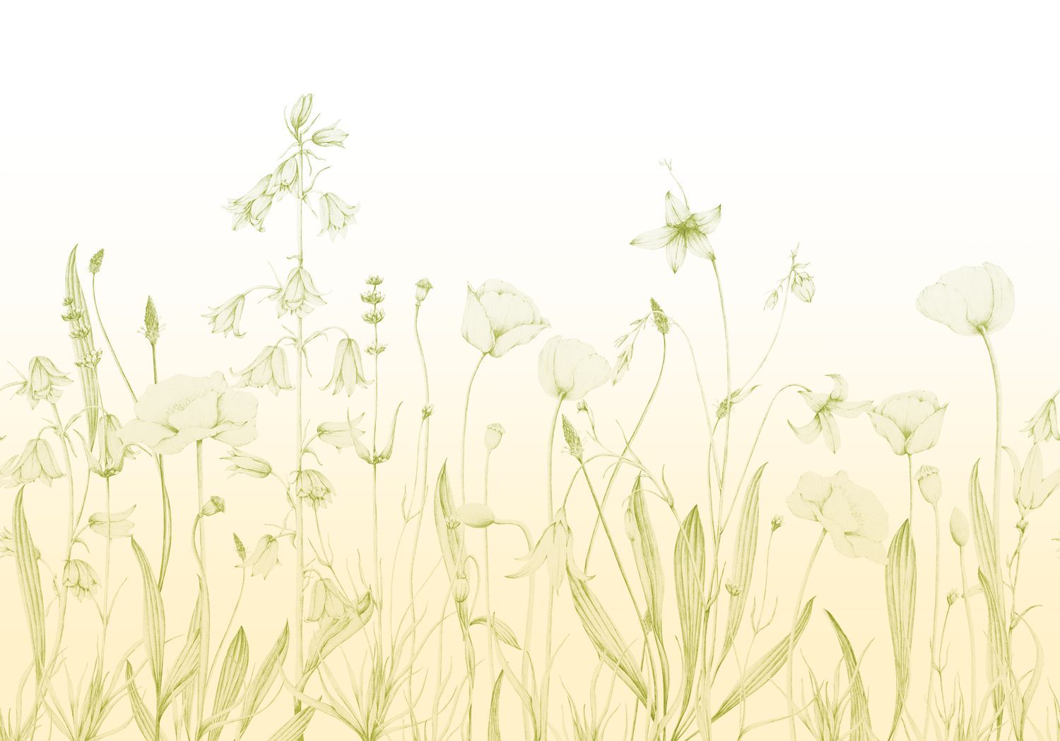 Una siesta en el claro Disfrute de un picnic en el campo para tumbarse en la hierba: tal vez vea esta bucólica vista panorámica alzarse ante usted. Bajo el lápiz del estudio de diseño florecen amapolas y plátanos sin olvidar las bonitas campanillas.
